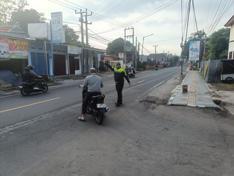 Petugas memberikan imbauan kamtibmas kepada para pengendara.