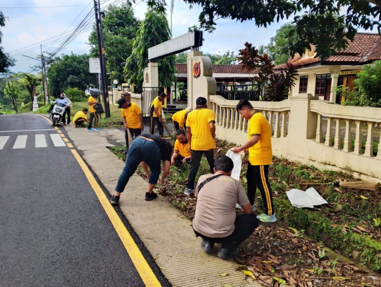 Polres Kuningan Polda Jabar – Kapolsek Cibingbin, AKP Afriando Tri Kusdarmanto bersama anggota Polsek Cibingbin melaksanakan kegiatan kerja bakti korve bersih-bersih di sekitar Mako Polsek Cibingbin, Kabupaten Kuningan. Kegiatan ini dilakukan untuk menjaga kebersihan dan keindahan lingkungan sekitar Mako Polsek.Dalam kegiatan kerja bakti tersebut, Kapolsek Cibingbin dan anggota Polsek Cibingbin membersihkan sampah, memotong rumput, dan membersihkan fasilitas umum di sekitar Mako Polsek. Mereka juga membersihkan ruang-ruang kantor dan fasilitas lainnya untuk menjaga kebersihan dan kenyamanan.Kapolsek Cibingbin mengatakan bahwa kegiatan kerja bakti ini merupakan salah satu upaya Polsek Cibingbin untuk menjaga kebersihan dan keindahan lingkungan. “Kami ingin menciptakan lingkungan yang bersih dan nyaman bagi masyarakat dan anggota Polsek,” katanya.Kegiatan kerja bakti ini juga bertujuan untuk meningkatkan kesadaran dan kepedulian anggota Polsek Cibingbin terhadap lingkungan. Dengan demikian, diharapkan dapat meningkatkan kualitas pelayanan kepada masyarakat dan menciptakan lingkungan yang lebih baik.