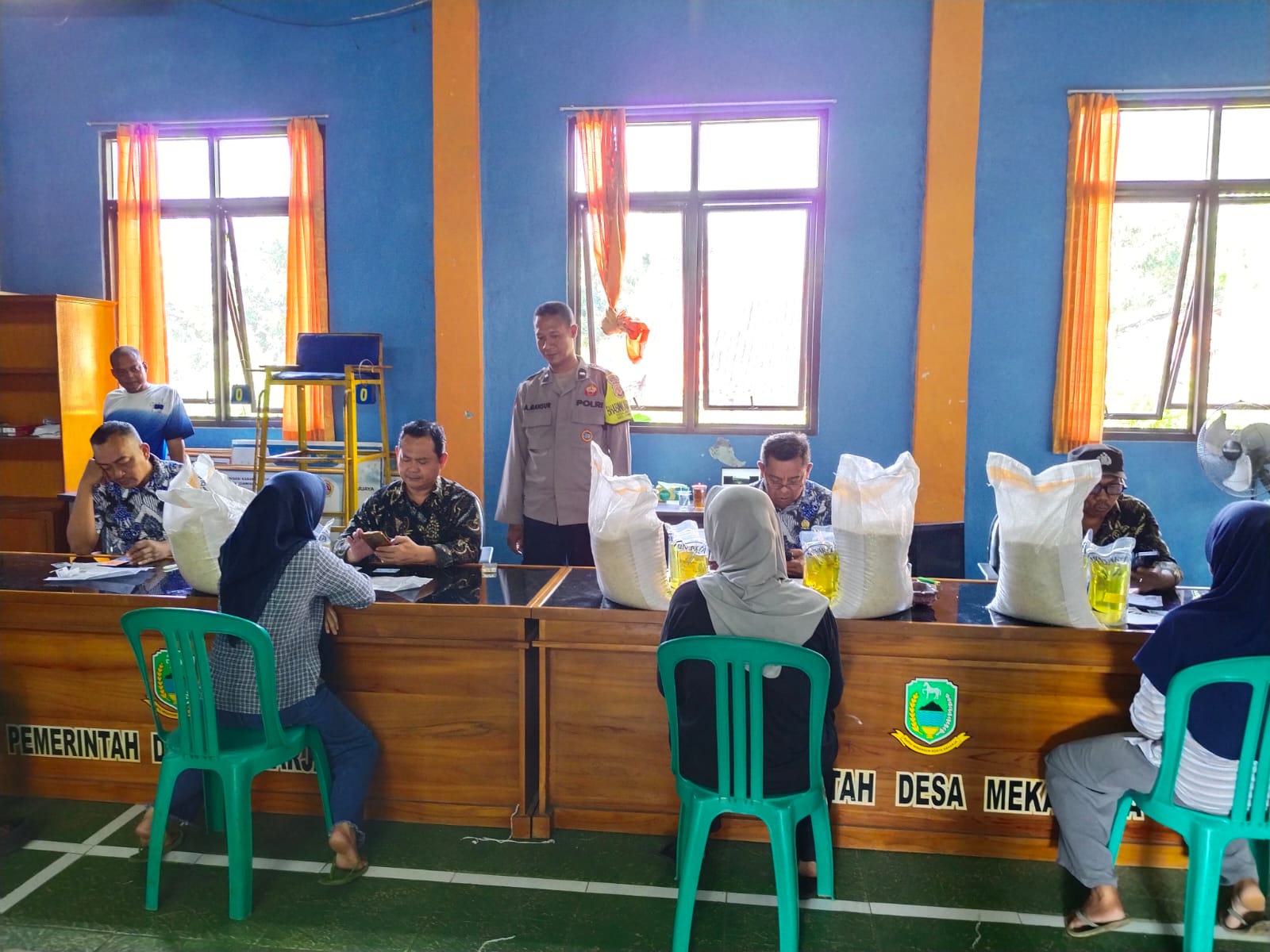 Polres Kuningan Polda Jabar – Bhabinkamtibmas Desa Mekarjaya Polsek Ciawigebang Polres Kuningan Polda Jabar Aipda Ahmad Mansur melaksanakan kegiatan pengamanan dan monitoring penyaluran bantuan sosial (bansos) di Balai Desa Mekarjaya, Kecamatan Ciawigebang, Kabupaten Kuningan, Kamis (16/4/2026).