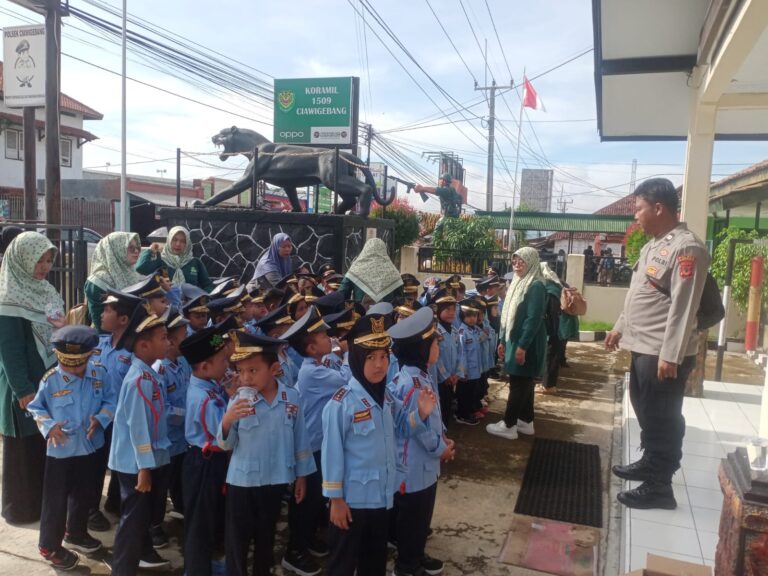 Polres Kuningan Polda Jabar – Polsek Ciawigebang Polres Kuningan Polda Jabar menerima kunjungan puluhan anak-anak RA (Raudlatul Athfal) Manba’ul Huda Desa Sidaraja, Kecamatan Ciawigebang, Kabupaten Kuningan. Kegiatan tersebut berlangsung di Mako Polsek Ciawigebang dan diisi dengan pembinaan serta penyuluhan (binluh) kepada anak-anak RA.