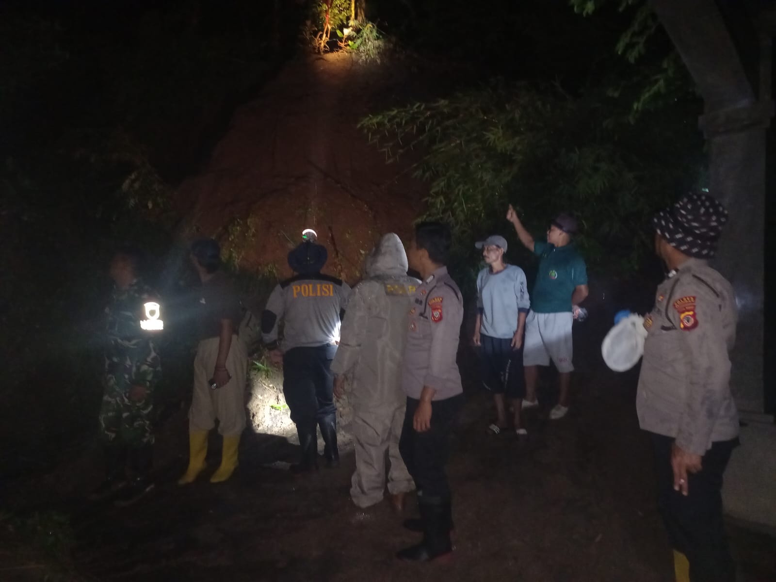 Kuningan – Anggota Polsek Luragung Polres Kuningan melakukan pengecekan Lokasi terjadinya longsor di Dusun Pahing Desa Cimulya Kecamatan Cimahi Kabpaten Kuningan, Rabu malam (11/02/2026).