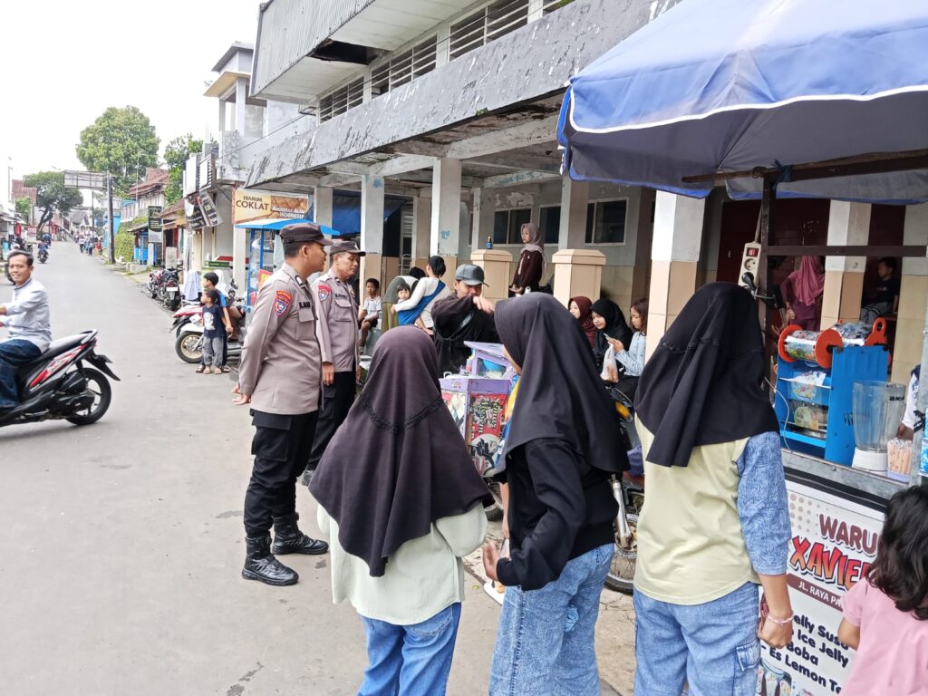 Anggota Polsek Pasawahan monitoring kegiatan masyarakat yang membeli takjil