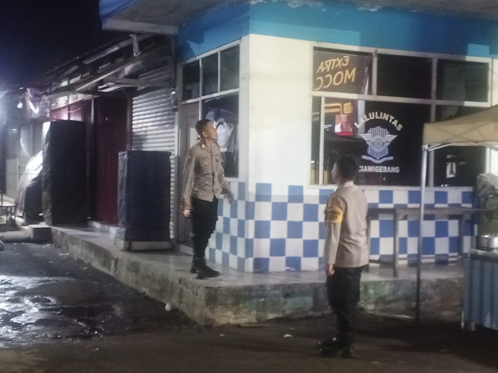 Patroli KRYD Malam Hari, Bhabinkamtibmas Polsek Ciawigebang Polres Kuningan Sambangi Pedagang Pasar Desa Ciputat