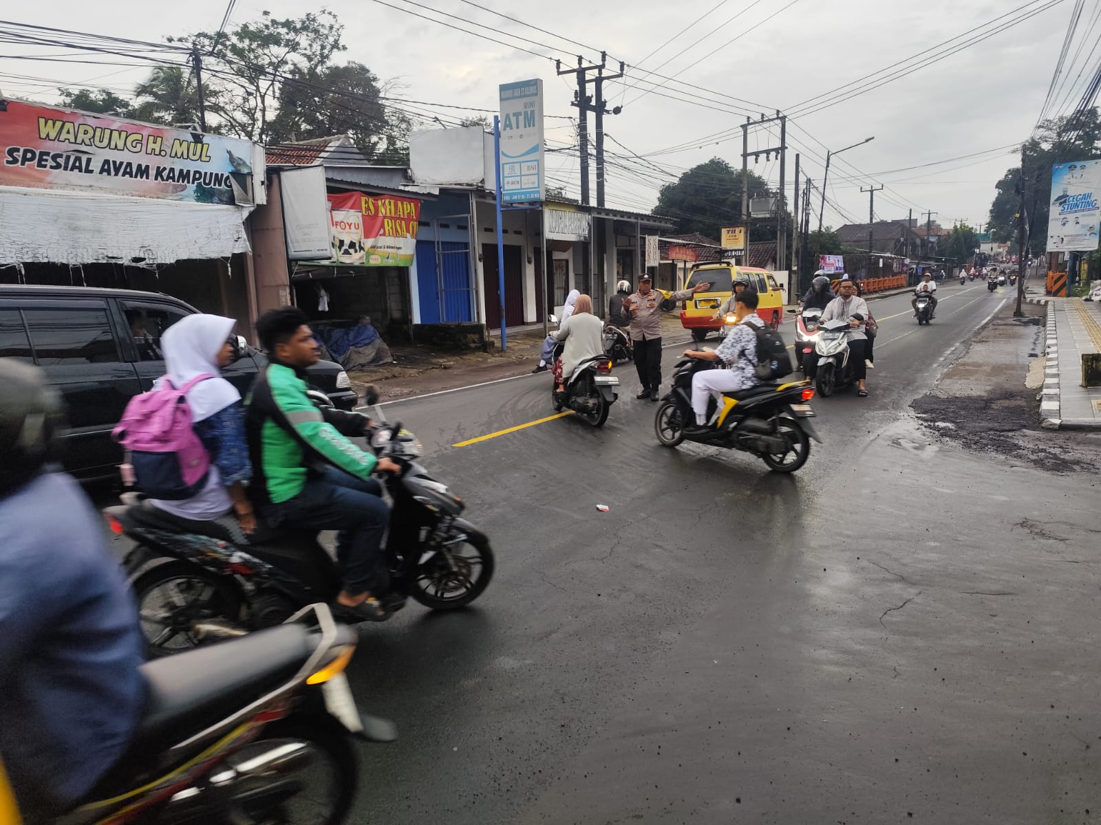 Langkah cepat petugas berhasil mengurai potensi kemacetan. Kendaraan roda dua maupun roda empat dapat melintas dengan tertib.