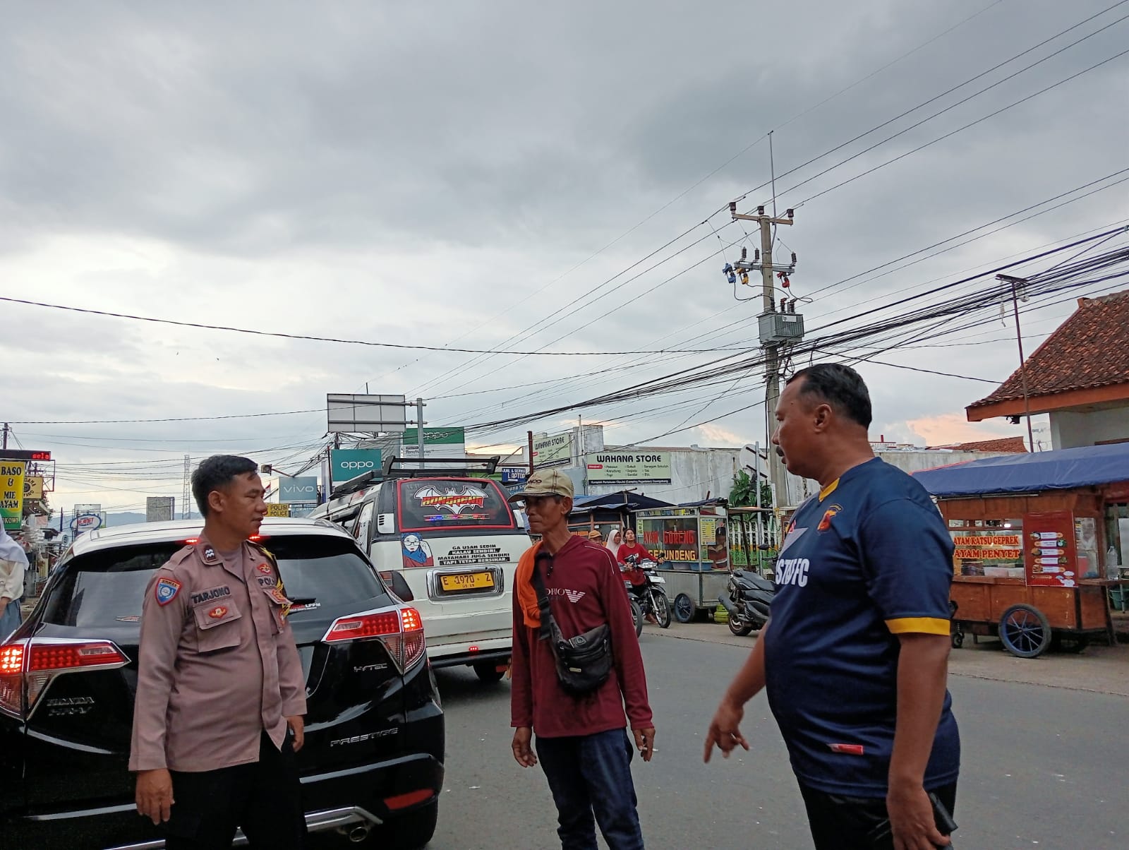 Polres Kuningan Polda Jabar – Panit Reskrim Polsek Ciawigebang Polres Kuningan Polda Jabar Iptu Iid Nurdin, S.H., bersama anggota Bhabinkamtibmas Aiptu Tarjono melaksanakan patroli ke Pasar Desa Ciputat, Kecamatan Ciawigebang, Kabupaten Kuningan. Dalam kegiatan tersebut, petugas menyambangi juru parkir untuk menyampaikan himbauan kamtibmas terutama terkait upaya antisipasi adanya tindakan premanisme di area pasar, Sabtu (29/11).