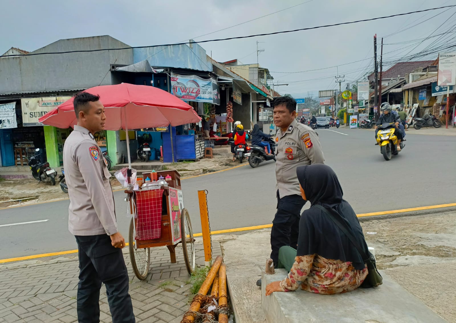 Aiptu Juro Jauhari, S.H. bersama Brigpol Singgih Priyogo, S.H. melakukan dialogis dengan warga di Simpang Tiga Pusat Gadai. Petugas mengajak masyarakat untuk bersama-sama menjaga lingkungan dari aksi kejahatan dan selalu waspada terhadap pendatang baru dengan gerak-gerik yang mencurigakan. Kerjasama ini dinilai sangat penting dalam memperkuat sistem keamanan lingkungan.