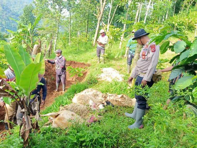 KUNINGAN – Peristiwa memilukan menimpa salah seorang peternak di Dusun Bangbayang, Desa Bungurberes, Kecamatan Cilebak, Kabupaten Kuningan. Sebanyak 16 ekor domba milik Bapak Alimudin dilaporkan menjadi korban serangan hewan buas yang diduga kuat merupakan kawanan anjing liar pada Selasa (13/01/2026) dini hari. Kejadian ini mengakibatkan kerugian materiil yang cukup besar bagi peternak, mencapai puluhan juta rupiah.Kapolsek Subang IPTU Suhandi, S.M., mengungkapkan bahwa laporan diterima sekitar pukul 08.00 WIB. Berdasarkan keterangan saksi di lokasi, pemilik ternak sempat mendengar suara gaduh anjing sekitar pukul 05.00 WIB. Saat dilakukan pengecekan ke kandang, ditemukan 8 ekor domba sudah dalam kondisi mati dengan luka gigitan pada bagian leher, sementara 8 ekor lainnya mengalami luka serius namun masih dalam kondisi hidup.Merespons kejadian tersebut, personel Polsek Subang segera mendatangi Tempat Kejadian Perkara (TKP) untuk melakukan pendataan dan dokumentasi awal. Total kerugian diperkirakan mencapai Rp35.000.000,- (Tiga Puluh Lima Juta Rupiah). Sebagai langkah penanganan pertama, petugas bersama warga membantu proses penguburan ternak yang mati guna mencegah timbulnya penyakit di lingkungan pemukiman.Pihak Kepolisian melalui Kapolsek Subang memberikan imbauan tegas kepada masyarakat, khususnya para peternak di Desa Bungurberes, untuk meningkatkan kewaspadaan. Warga diminta untuk kembali mengaktifkan kegiatan ronda malam dan memastikan kondisi kandang ternak dalam keadaan tertutup rapat dan aman. Koordinasi antara pihak desa, aparat keamanan, dan kecamatan terus diperkuat guna mengantisipasi serangan susulan.Hingga saat ini, situasi di lokasi kejadian dilaporkan tetap aman dan kondusif, namun ketegangan masih dirasakan oleh warga sekitar yang memiliki hewan ternak. Polsek Subang berkomitmen untuk terus memantau perkembangan situasi dan mendampingi warga dalam melakukan upaya-upaya preventif guna melindungi aset masyarakat dari gangguan hewan liar maupun tindak kejahatan.