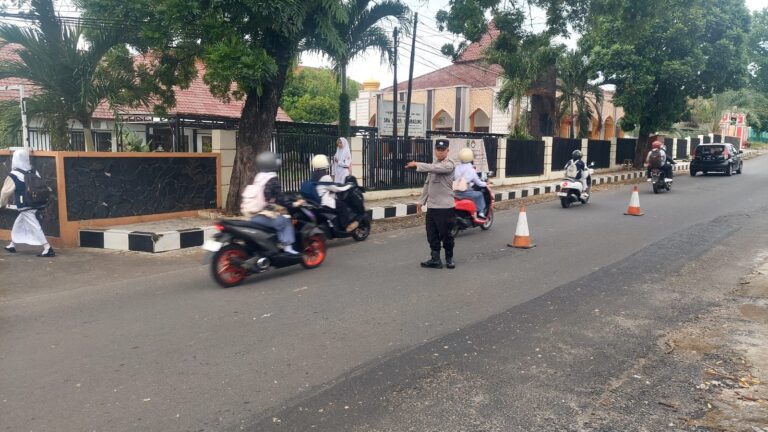 Kuningan – Anggota Polsek Luragung melaksanakan kegiatan pengaturan lalu lintas dan antisipasi Kecelakaan di Jalan Raya Kuningan Luragung depan SMAN 1 Luragung, berikan kenyamanan dan keselamatan pengguna jalan, Senin pagi (08/12/2025).