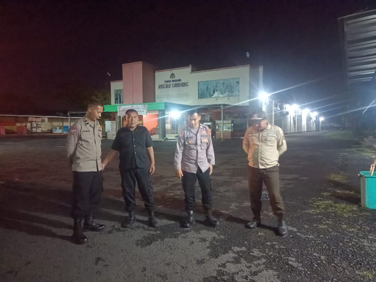 Polres Kuningan Polda Jabar – Anggota Bhabinkamtibmas Polsek Ciawigebang Polres Kuningan Polda Jabar, Aiptu Tarjono dan Aipda Ahmad Mansur, melaksanakan patroli dialogis pada malam hari dengan menyambangi Satpam Toko Aneka Sandang di Desa Kadurama, Kecamatan Ciawigebang, Kabupaten Kuningan, Selasa (9/12).
