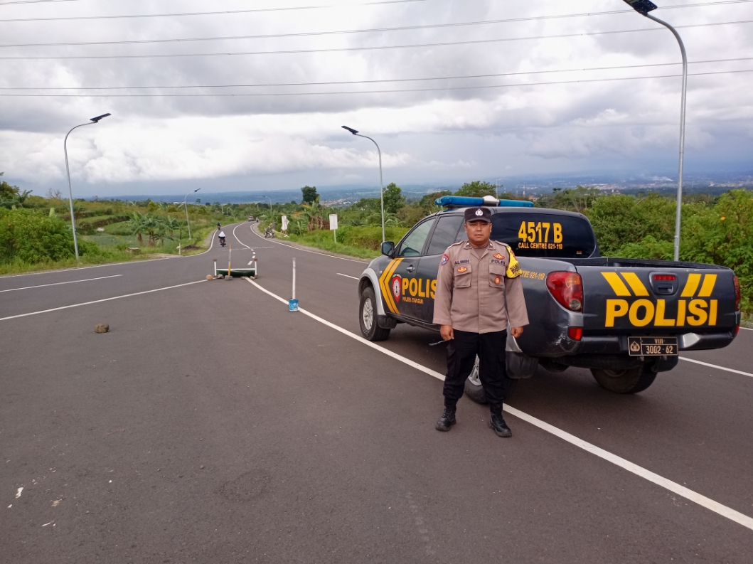 Bhabinkamtibmas Cisantana  polsek Cigugur laksanakan pengaturan lalu lintas di pertigaan jalan baru Cipari