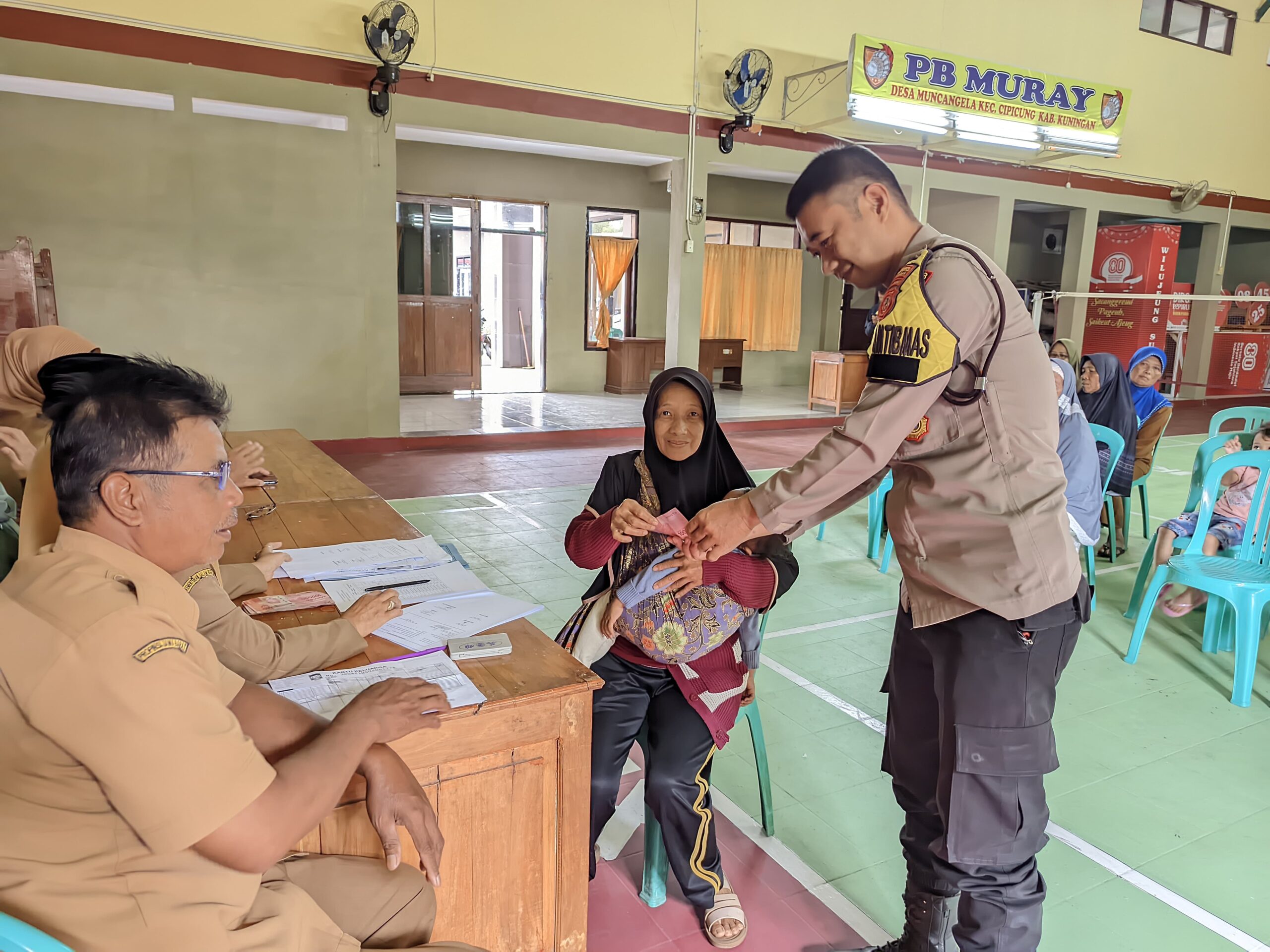 Kegiatan tersebut dilaksanakan di aula Desa Muncangela, Kecamatan Cipicung, Kabupaten Kuningan, dengan jumlah penerima sebanyak 30 Keluarga Penerima Manfaat (KPM) . Masing-masing KPM menerima bantuan sebesar Rp 300.000,- . Kehadiran TNI–POLRI bertujuan memastikan pelaksanaan berjalan dengan tertib, aman, dan tepat sasaran.