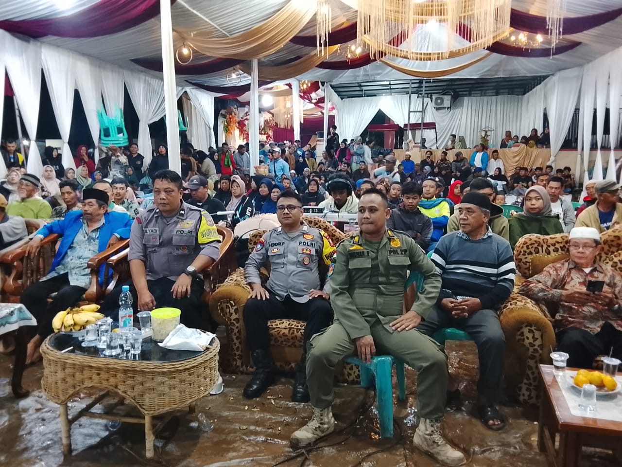 Polres Kuningan Polda Jabar – Anggota Bhabinkamtibmas Polsek Ciawigebang Polres Kuningan Polda Jabar Aipda Mulyadi dan Bripka Hendri Priyono bersama anggota Satpol PP Kecamatan Ciawigebang melaksanakan kegiatan pengamanan hiburan masyarakat berupa pertunjukan wayang golek pada acara hajatan warga di Desa Cihirup, Kecamatan Ciawigebang, Kabupaten Kuningan, Rabu (5/11/2025) malam.