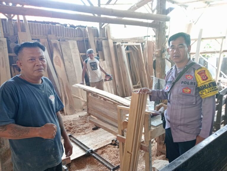 Beranda » Bhabinkamtibmas Desa Ciawilor Sambangi Pengusaha Kusen, Sampaikan Himbauan Kamtibmas