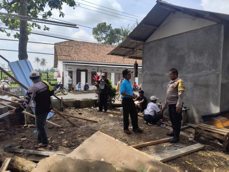 Bhabinkamtibmas memonitor pembangunan pos ronda.