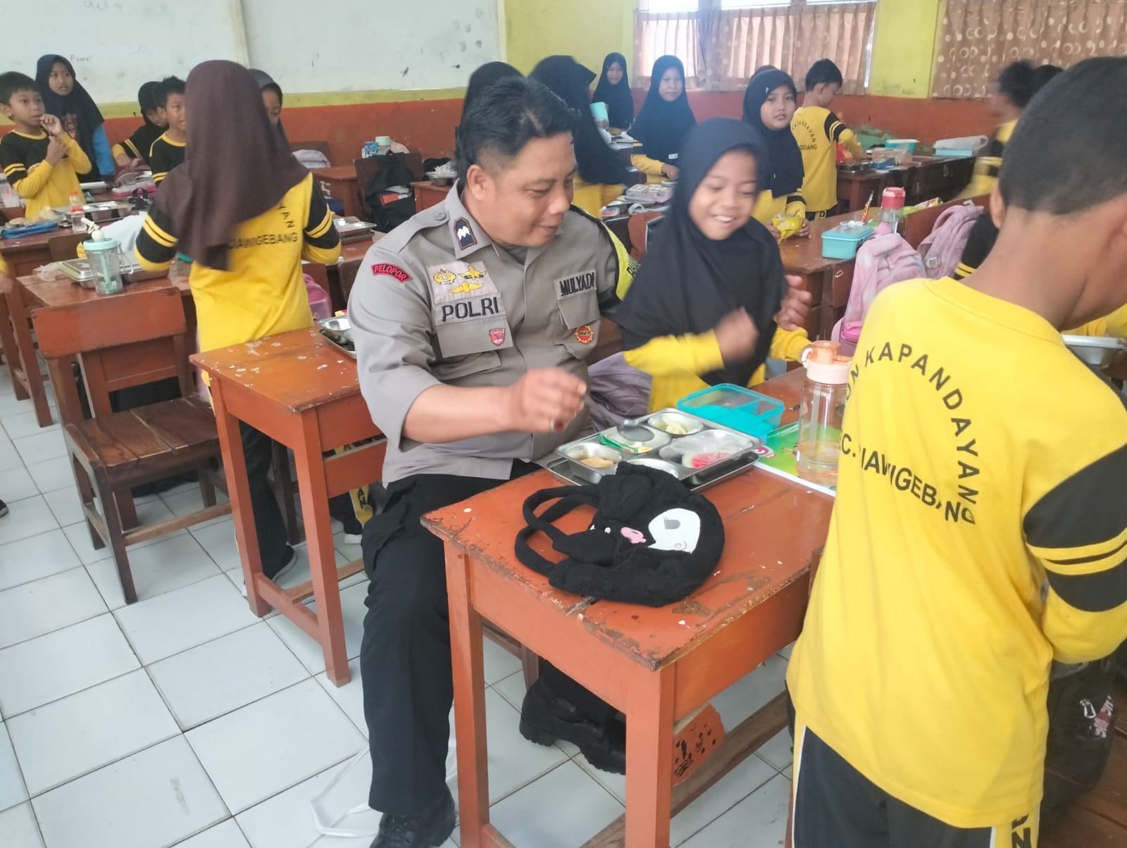 Bhabinkamtibmas Desa Kapandayan Monitor Program Makan Bergizi Gratis di SD Negeri 1 Kapandayan