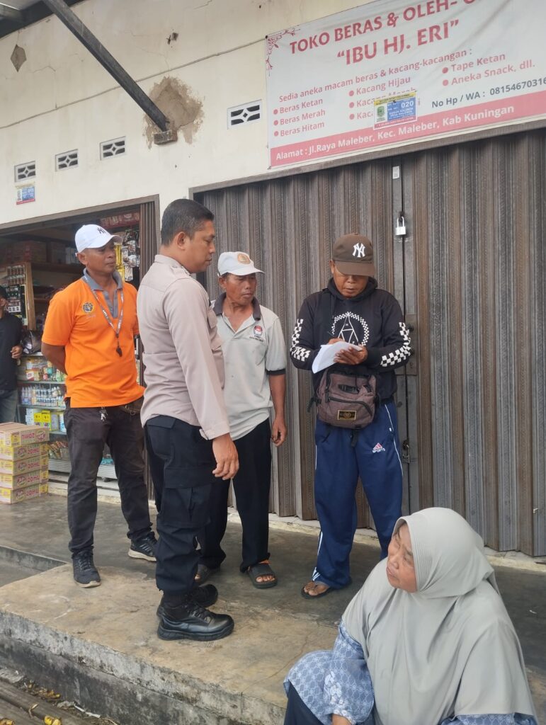 KUNINGAN – Bhabinkamtibmas Desa Maleber, Kecamatan Maleber, Kabupaten Kuningan, Aipda Asep Adi Saputro, S.H., melaksanakan kegiatan pemberian pesan kamtibmas kepada tukang parkir dan warga masyarakat di Pasar Maleber pada hari Rabu, 4/2/2026.