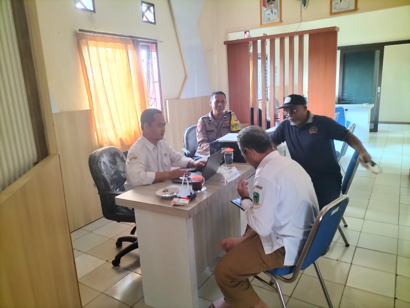 Dalam kesempatan tersebut, Aipda Ahmad Mansur berdialog dengan perangkat desa membahas situasi kamtibmas terkini di wilayah Desa Mekarjaya serta mengajak seluruh perangkat desa untuk bersama-sama berperan aktif dalam menjaga keamanan lingkungan.