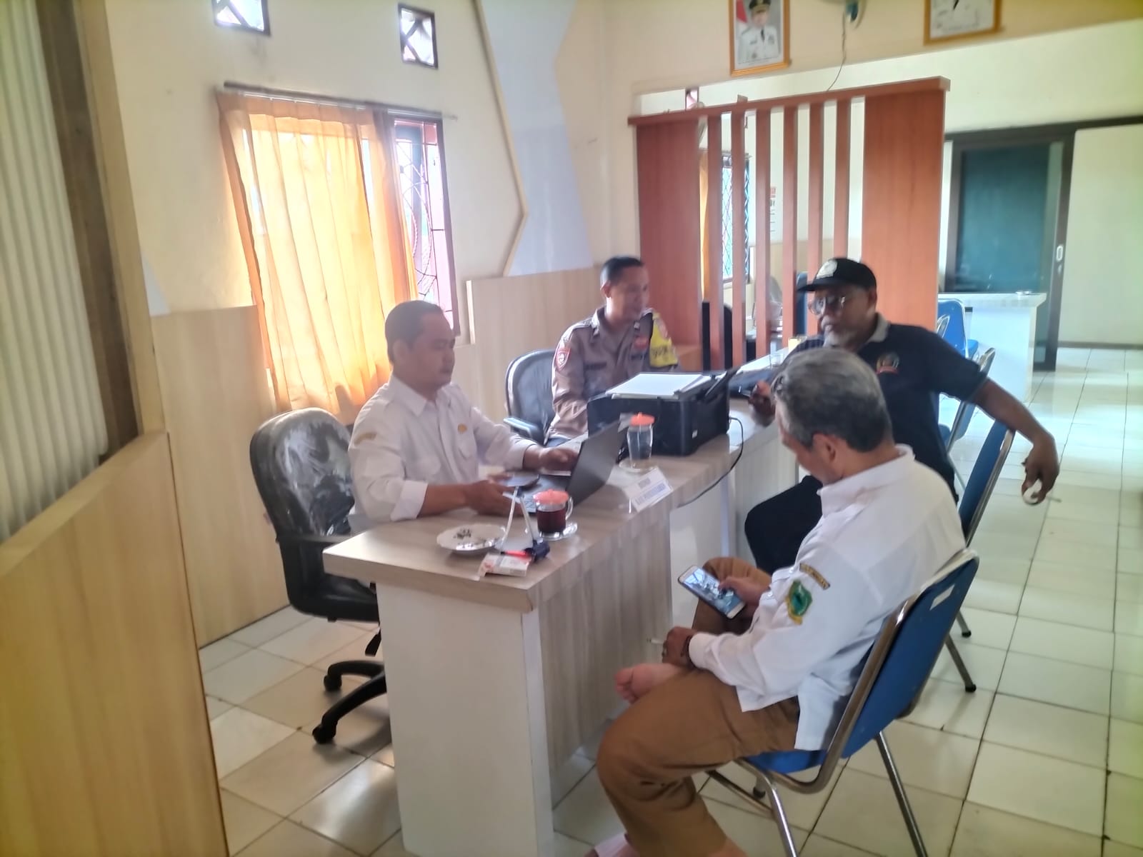 Dalam kesempatan tersebut, Aipda Ahmad Mansur berdialog dengan perangkat desa membahas situasi kamtibmas terkini di wilayah Desa Mekarjaya serta mengajak seluruh perangkat desa untuk bersama-sama berperan aktif dalam menjaga keamanan lingkungan.