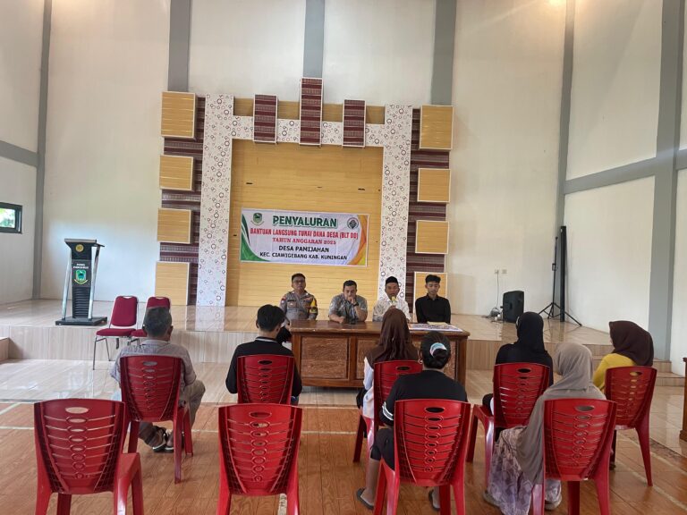 Polres Kuningan Polda Jabar – Bhabinkamtibmas Desa Pamijahan Polsek Ciawigebang Polres Kuningan Polda Jabar, Bripka Hendri Priyono, menghadiri kegiatan penyaluran Bantuan Langsung Tunai Dana Desa (BLT DD) untuk bulan Desember 2025 yang dilaksanakan di Aula Desa Pamijahan, Kecamatan Ciawigebang, Kabupaten Kuningan, Jumat (5/12).