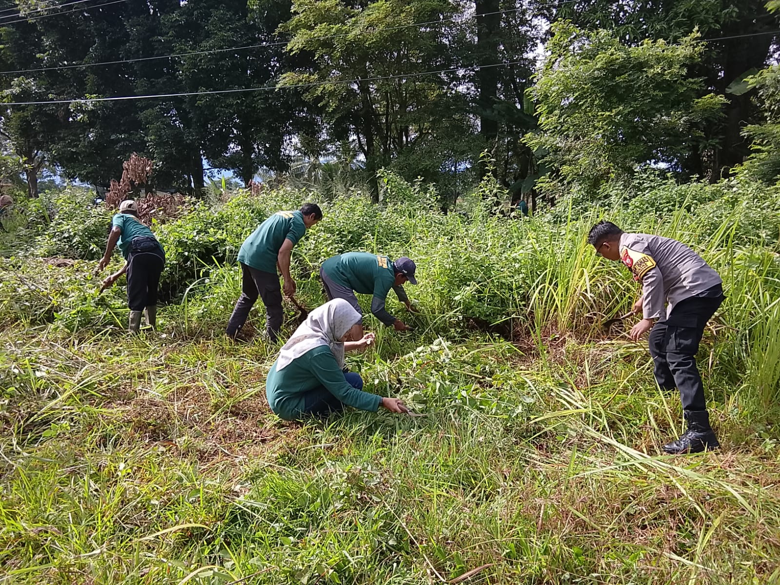 Bhabinkamtibmas Kadurama Bersama Warga Bersihkan Area TPU Dusun Wage
