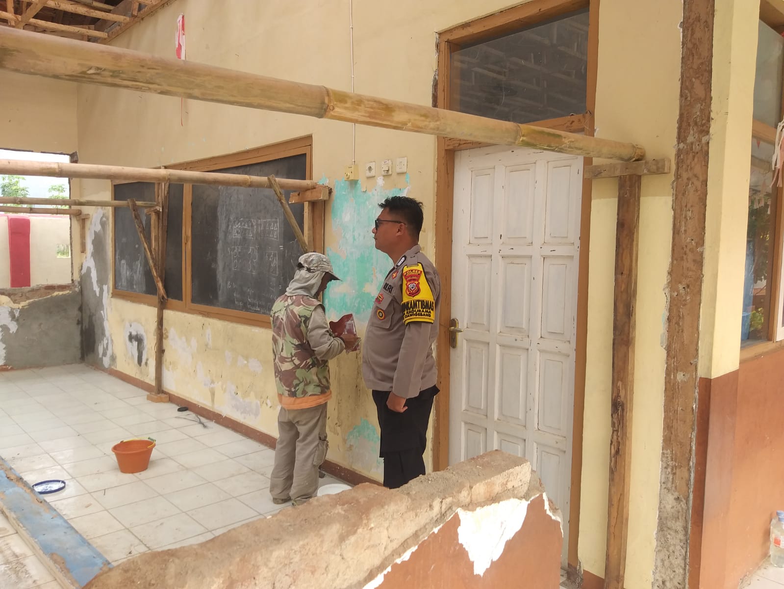 Selain melakukan pemantauan, Bripka Hendri juga memberikan pesan kepada pihak sekolah dan para pekerja agar selalu memperhatikan keselamatan kerja serta menjaga kualitas hasil renovasi.