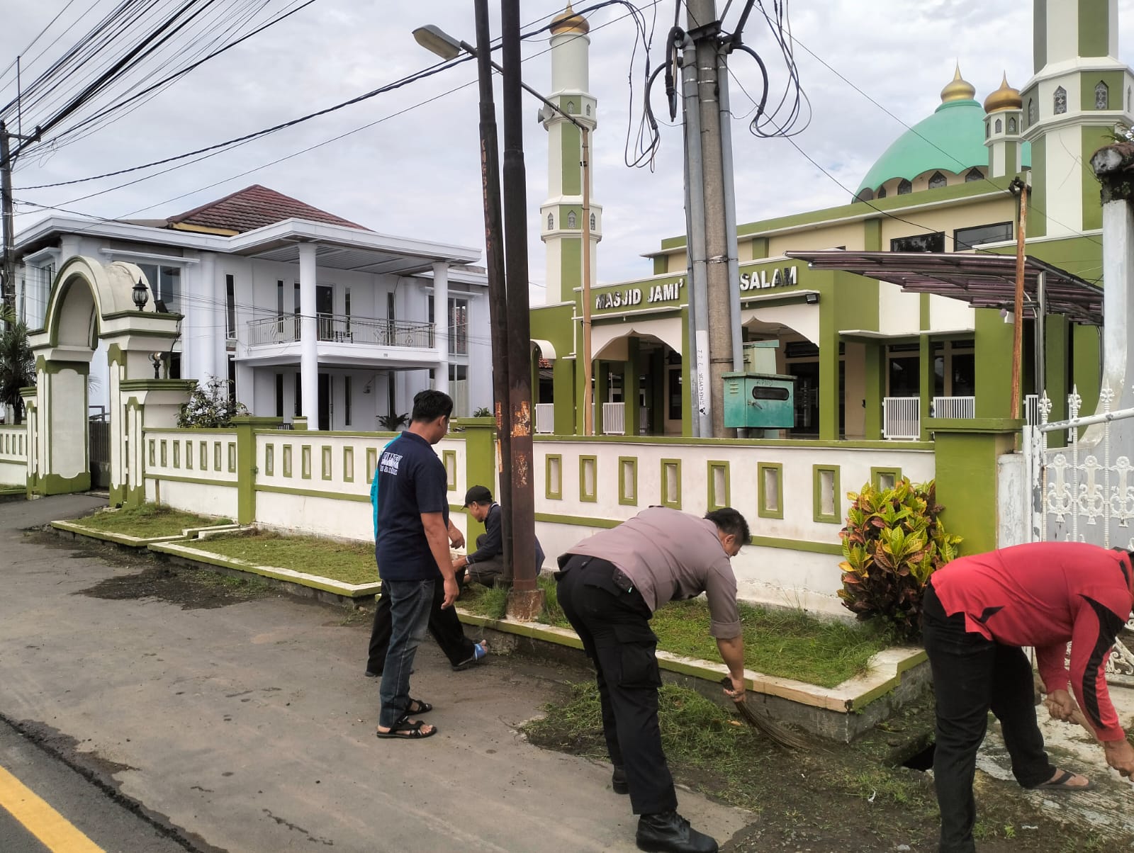 Polres Kuningan Polda Jabar – Bhabinkamtibmas Desa Kapandayan Polsek Ciawigebang Polres Kuningan Polda Jabar Aipda Mulyadi bersama Perangkat Desa Kapandayan melaksanakan kegiatan kerja bakti bersih-bersih di halaman Balai Desa Kapandayan dan Masjid Jami Babussalam Desa Kapandayan, Kecamatan Ciawigebang, Kabupaten Kuningan, Minggu (8/2/2026).
