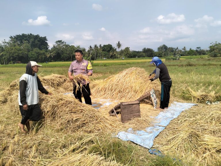 Bhabinkamtibmas Kapandayan Dampingi Warga Panen Padi Dukung Ketahanan Pangan Nasional
