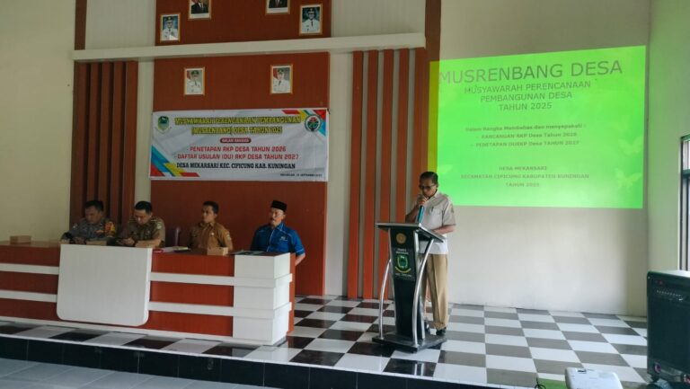 Polres Kuningan Polda Jabar – Bhabinkamtibmas Desa Mekarsari Polsek Ciawigebang Polres Kuningan Polda Jabar Aipda H. Agus Subono, S.H., menghadiri kegiatan Musyawarah Perencanaan Pembangunan (Musrenbang) Desa Tahun 2025 yang dilaksanakan di Desa Mekarsari, Kecamatan Cipicung, Kabupaten Kuningan, Sabtu (4/10).