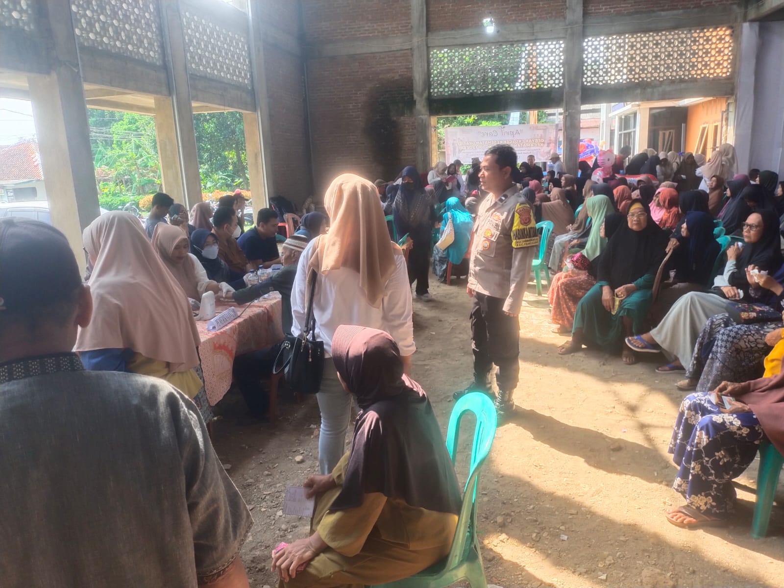 Bhabinkamtibmas Monitoring Kegiatan Cek Kesehatan Gratis EKG dari RS Sumber Hurip Cirebon di Desa Sindangkempeng, Sekaligus Sampaikan Himbauan Kamtibmas Demi Terciptanya Situasi Aman Kondusif