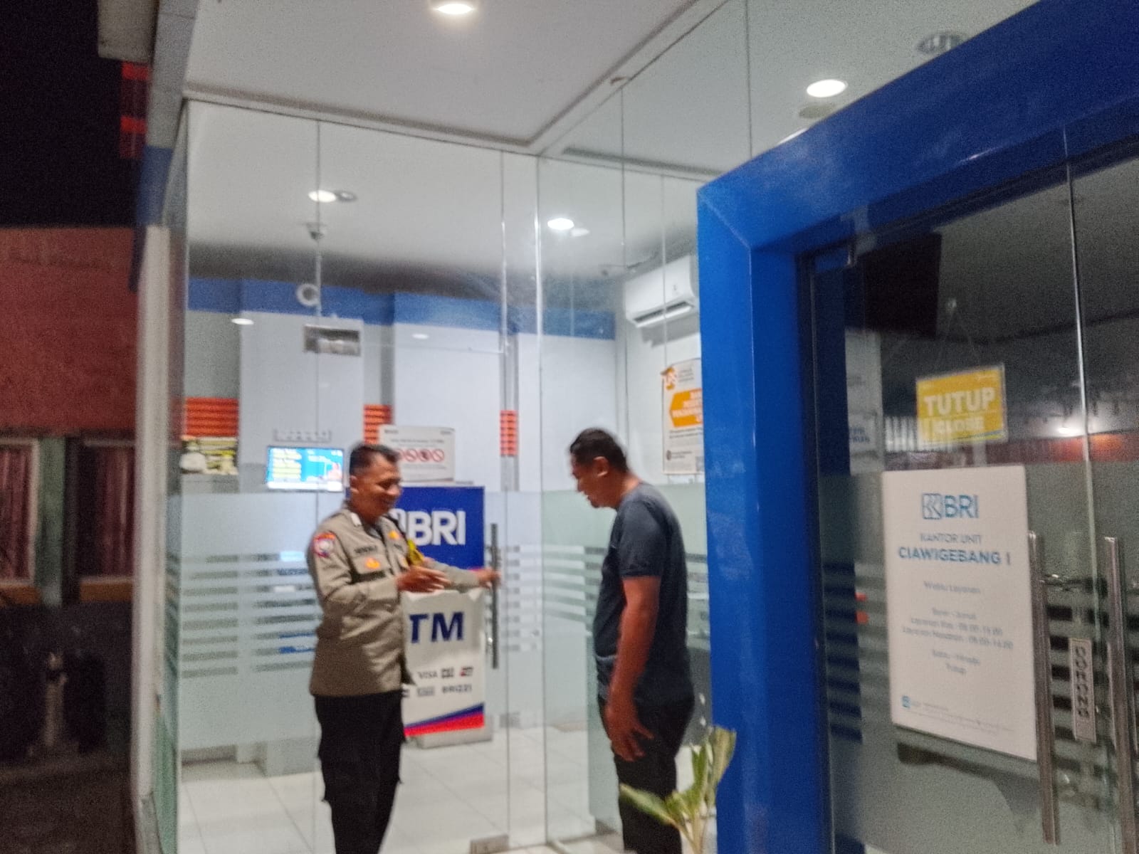 Bhabinkamtibmas Polsek Ciawigebang Intensifkan Patroli KRYD Malam Hari, Sambangi Satpam Bank BRI Unit Ciawigebang 1