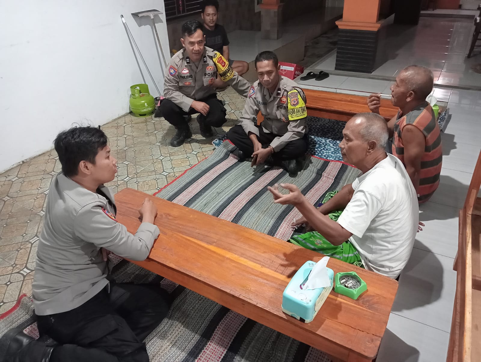 Polres Kuningan Polda Jabar – Anggota Bhabinkamtibmas Polsek Ciawigebang Polres Kuningan Polda Jabar, Aiptu Tarjono, Aipda Ahmad Mansur, dan Briptu Farrel melaksanakan kegiatan silaturahmi kamtibmas dengan tokoh masyarakat di Desa Ciawigebang, Kecamatan Ciawigebang, Kabupaten Kuningan, Jumat (10/10/2025) malam.