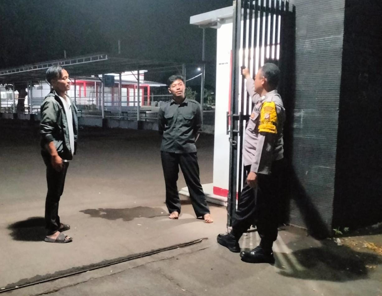 Patroli KRYD Malam Hari, Bhabinkamtibmas Polsek Luragung Sampaikan Himbauan kepada Tukang Parkir