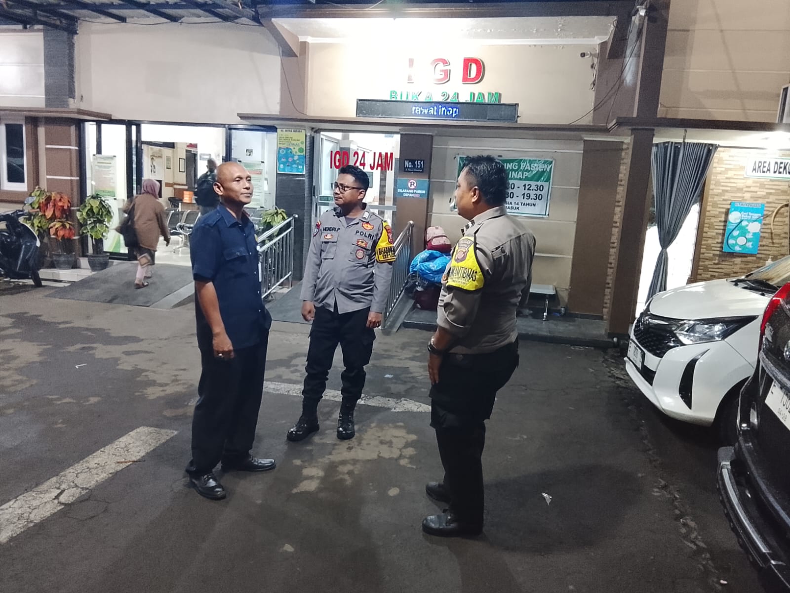 Polres Kuningan Polda Jabar – Anggota Bhabinkamtibmas Polsek Ciawigebang Polres Kuningan Polda Jabar, Aipda Mulyadi dan Bripka Hendri Priyono, melaksanakan patroli KRYD (Kegiatan Rutin Yang Ditingkatkan) dalam rangka cipta kondisi pada malam hari dengan menyambangi petugas Satpam Rumah Sakit Mitra Husada Ciawigebang di Desa Ciawigebang, Kecamatan Ciawigebang, Kabupaten Kuningan, Selasa (3/2/2026).