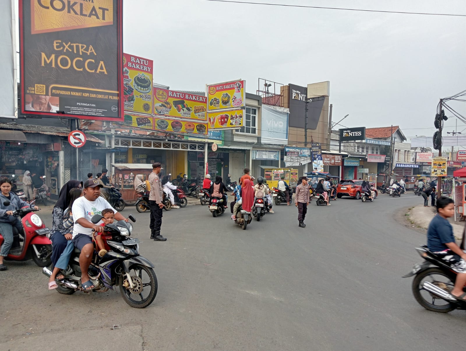 Bhabinkamtibmas Polsek Ciawigebang Laksanakan Pengaturan Lalu Lintas Jelang Berbuka Puasa di Pasar Ciputat