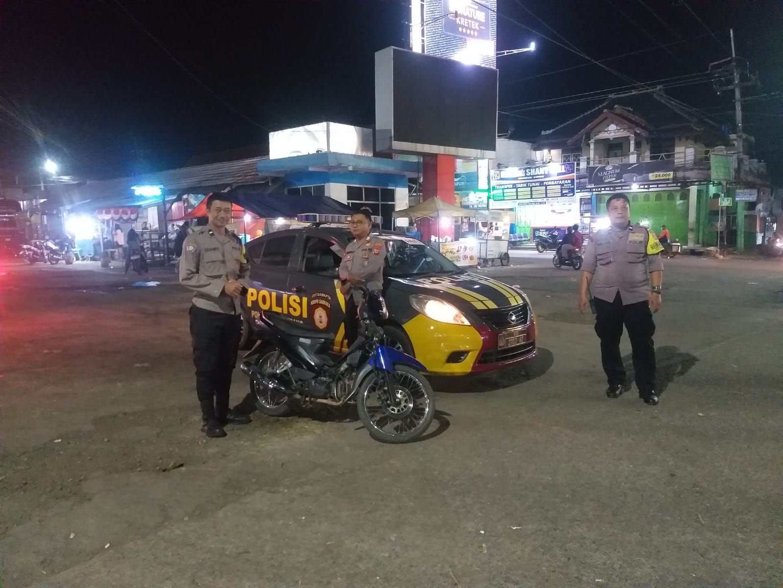Beranda » Bhabinkamtibmas Polsek Ciawigebang Patroli Malam di Pasar Ciputat Antisipasi C3