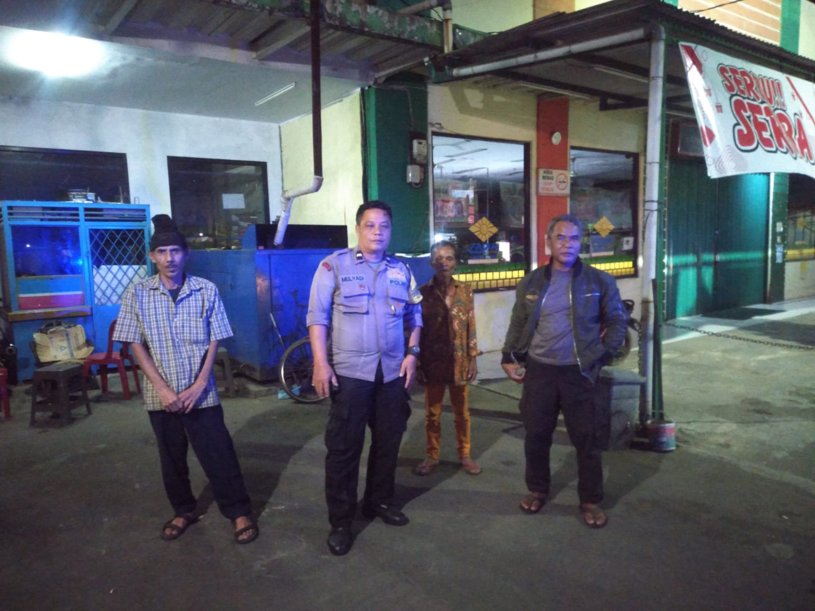 Bhabinkamtibmas Polsek Ciawigebang Sambangi Penjaga Malam Toserba Fajar Ciawigebang, Ajak Tingkatkan Kewaspadaan