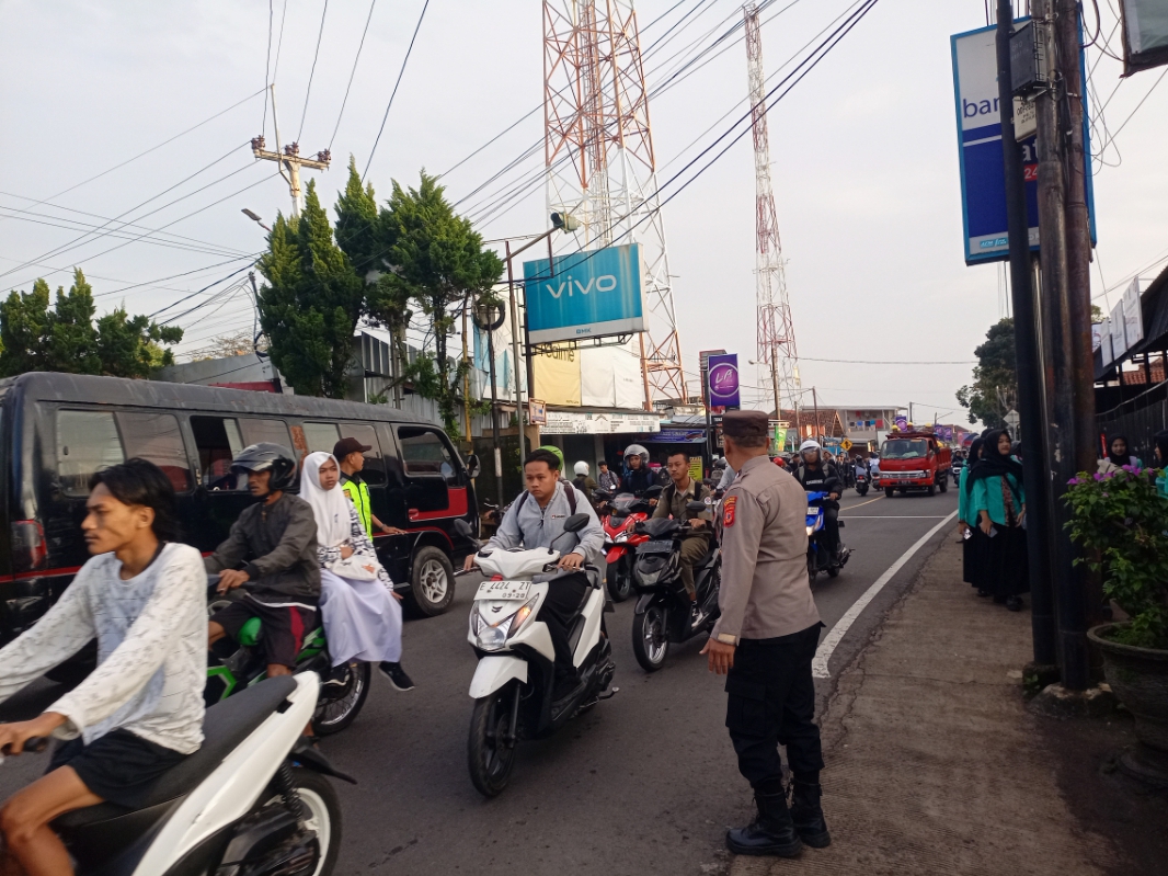 Bhabinkamtibmas Polsek Cigugur laksanakan pengaturan lalu lintas di pertigaan cipari guna tercipta kamseltibcarlantas