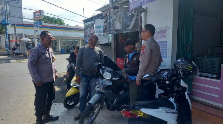 Polres Kuningan Polda Jabar – Bhabinkamtibmas Polsek Mandirancan Aiptu Taufik bersama Aipda Sonita menyambangi warga dan pengemudi ojek konvensional di Blok Kasab, Desa Nanggela sebagai bentuk pendekatan langsung dengan masyarakat.