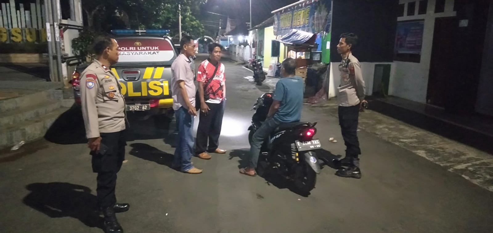 Polres Kuningan Polda Jabar – Anggota Bhabinkamtibmas Polsek Luragung Polres Kuningan Polda Jabar, Aipda Suherman bersama Aiptu Heri Riswono laksanakan Giat Patroli Malam antisipasi terjadinya Gangguan Kamtibmas dan sambangi warga Desa Sindangsuka Kecamatan Luragung, Senin (06/10/2025).