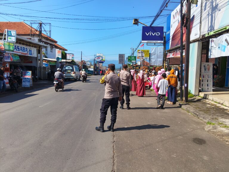 Polres Kuningan Polda Jabar – Anggota Polsek Ciawigebang Polres Kuningan Polda Jabar melaksanakan pengamanan kegiatan pembagian takjil kepada masyarakat yang diselenggarakan oleh Bhayangkari Cabang Kuningan bersama TK Bhayangkari Ciawigebang Kabupaten Kuningan. Kegiatan tersebut berlangsung di Jalan Raya Siliwangi Ciawigebang, Kabupaten Kuningan, pada bulan suci Ramadhan 1447 H / 2026 M, Kamis (12/3/2026).