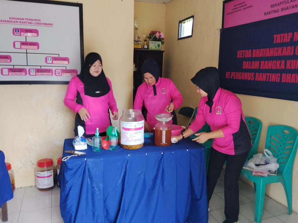 Kegiatan dipimpin langsung oleh Ketua Bhayangkari Ranting Lebakwangi Ny. Enci Wawan, didampingi Ny. Sondari Dadan selaku Seksi Kebudayaan serta Ny. Neneng Sigit sebagai Seksi Pumed (Publikasi Media).