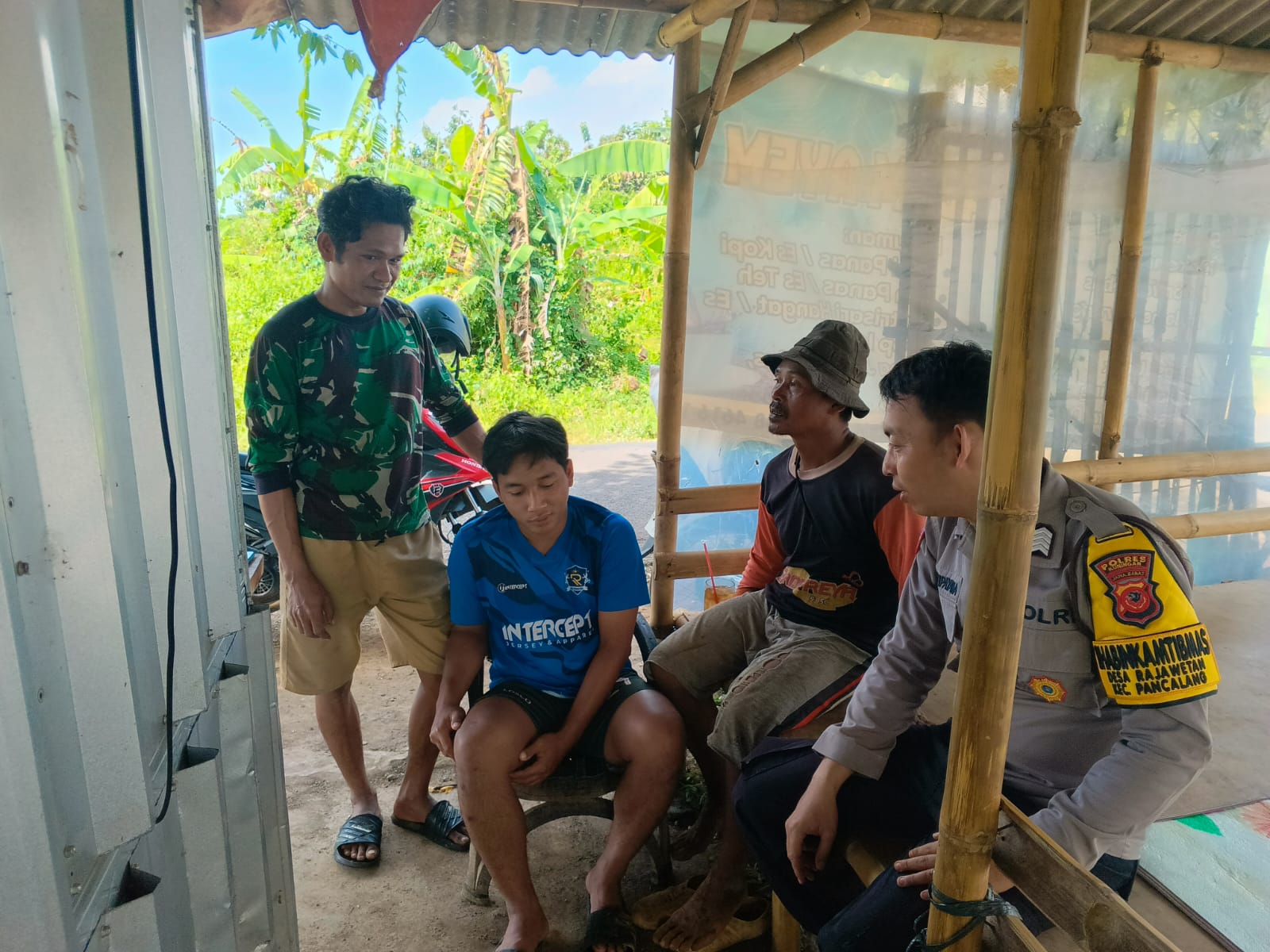 Bhabinkamtibmas Desa Rajawetan Bripka Andri Dwipayana bersama aparat desa melaksanakan kegiatan sambang dan silaturahmi dengan tokoh masyarakat yang dilaksanakan kemarin di wilayah Desa Rajawetan. Kegiatan ini merupakan bagian dari upaya Polri dalam mempererat hubungan kemitraan antara kepolisian, pemerintah desa, dan masyarakat guna menjaga keamanan dan ketertiban di lingkungan sekitar.