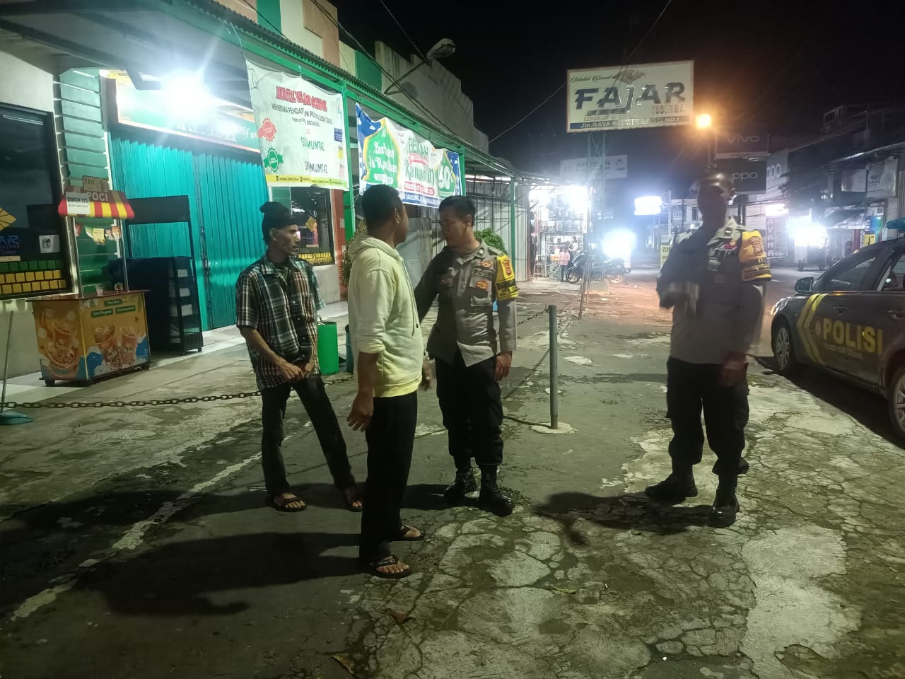 Polres Kuningan Polda Jabar – Anggota Bhabinkamtibmas Polsek Ciawigebang Polres Kuningan Polda Jabar Aiptu Tarjono dan Aipda Ahmad Mansur melaksanakan patroli KRYD (Kegiatan Rutin Yang Ditingkatkan) pada malam hari dengan menyambangi penjaga malam Toserba Fajar yang berada di Desa Ciawigebang, Kecamatan Ciawigebang, Kabupaten Kuningan, Selasa (14/10/2025).