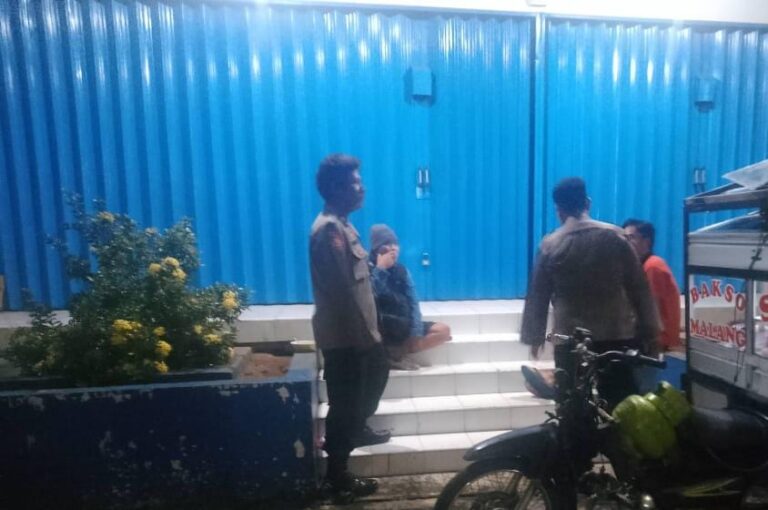 Patroli menyasar area yang berpotensi menimbulkan gangguan kamtibmas, salah satunya dengan mendatangi pemuda yang tengah nongkrong di depan Pusat Gadai, Sabtu (04/01/2026).