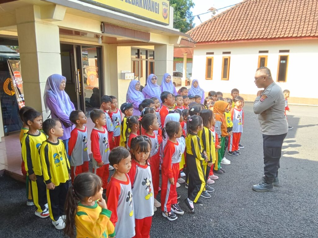 Sebanyak 60 murid TK PGRI III Lebakwangi melakukan kunjungan edukatif untuk mengenal lebih dekat tugas dan peran kepolisian.