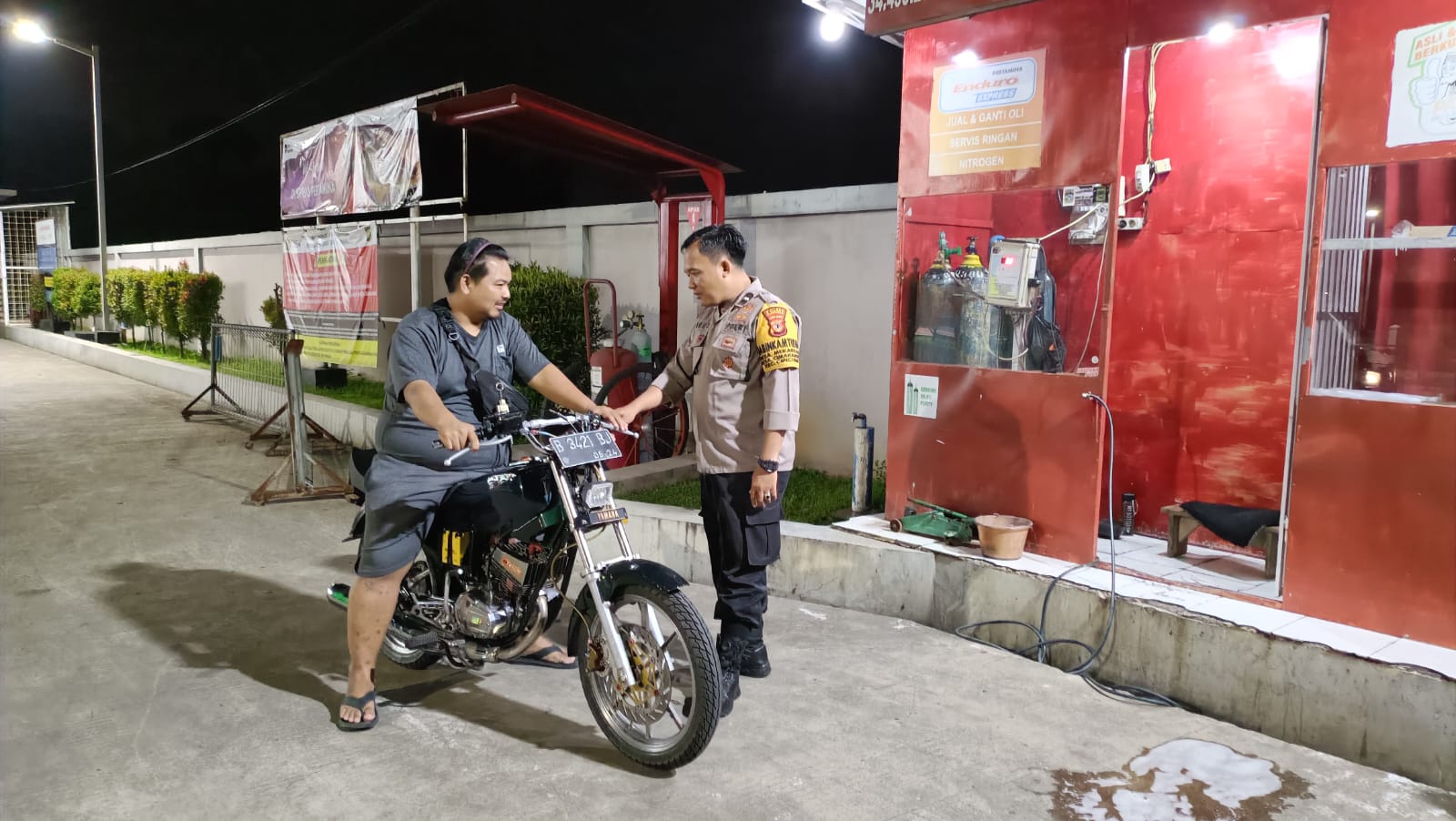 Cipta Kondisi, Bhabinkamtibmas Polsek Ciawigebang Gelar Patroli KRYD Malam Hari di SPBU Cipicung