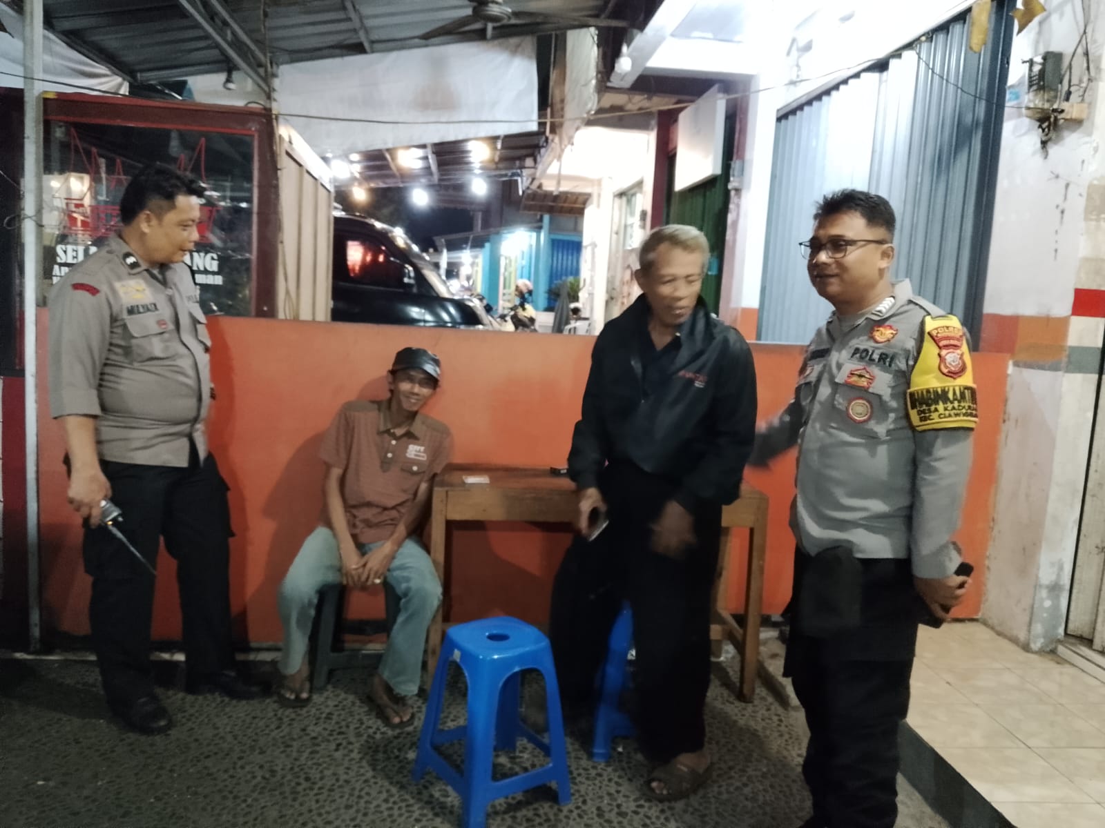 Cipta Kondisi Malam Hari, Bhabinkamtibmas Polsek Ciawigebang Patroli Sambangi Pertokoan Graha Mutiara