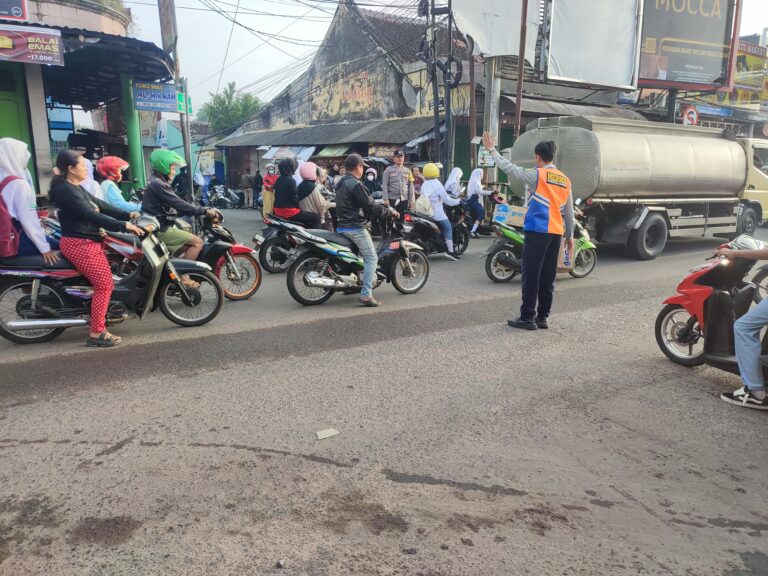Ciptakan Kelancaran dan Keamanan, Anggota Polsek Ciawigebang Lakukan Gatur Lalin Pagi Hari