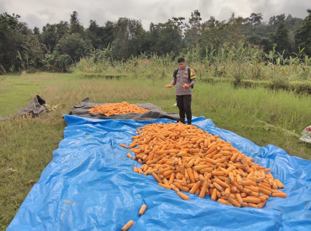 Pasawahan – Sebagai bentuk kepedulian terhadap sektor pertanian dan ketahanan pangan, Bhabinkamtibmas Desa Cibuntu Briptu Ilman Nurhidayat melaksanakan monitoring penjemuran jagung hibrida pascapanen di wilayah Desa Cibuntu, Kecamatan Pasawahan, pada Senin, 15 Desember 2025.