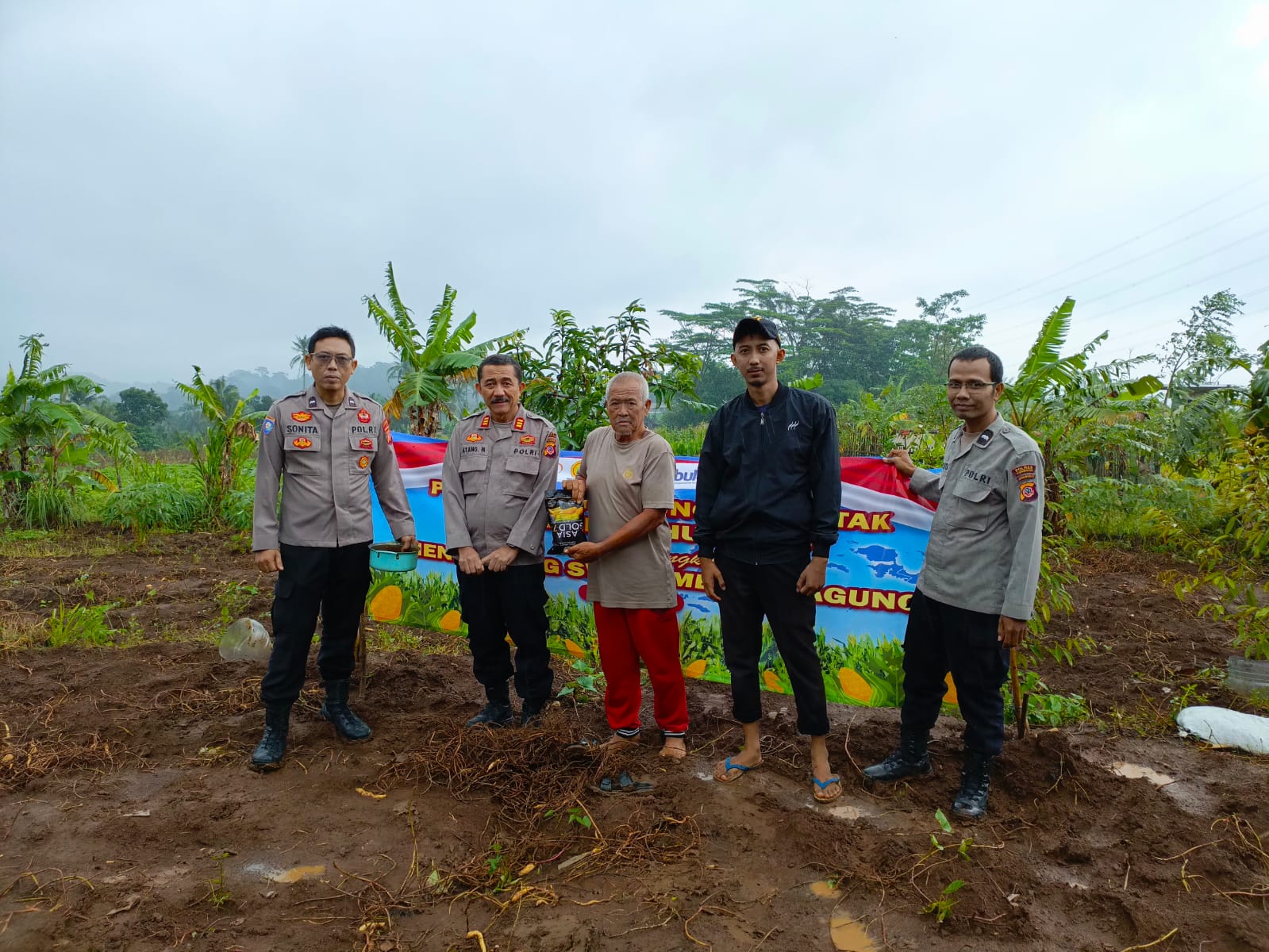 Kapolsek Mandirancan AKP Atang Mulyana dan Kelompok Tani Cirea Bersinergi Tanam Jagung Hibrida